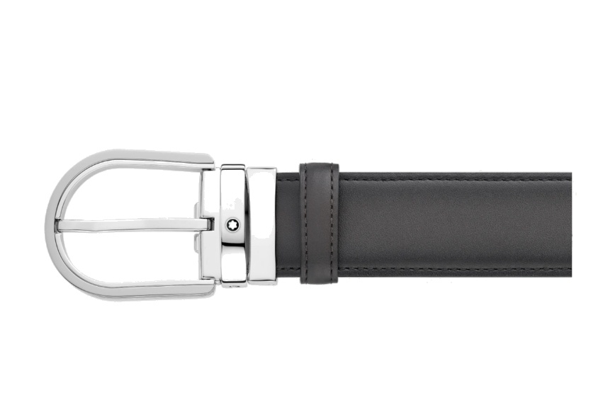 Кожаный ремень с пряжкой в форме подковы серого цвета 35 мм от магазина премиальных ручек Premium Pens в Чебоксарах.
